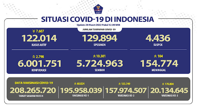 Dan kini pada Hari Terakhir di Tahun 2022, COVID-19 di Indonesia telah melaporkan hanya 488 Kasus per hari, sehingga Total Kasus-nya adalah 6.719.815 Orang. Adapun, Pasien Sembuh sebanyak 6.549.332 Orang (+ 4.200 Orang), dan Pasien Meninggal sebanyak 160.612 Orang (+ 19 Orang). Dan juga, 204.026.564 Orang telah mengambil Vaksin Dosis Pertama sementara 174.771.880. Orang telah melakukan Vaksinasi Dosis Kedua. Jumlah Vaksinasi Dosis Ketiga sebanyak 68.537.551 Dosis. Dan jumlah Vaksinasi Dosis Keempat sebanyak 1.169.962 Dosis.